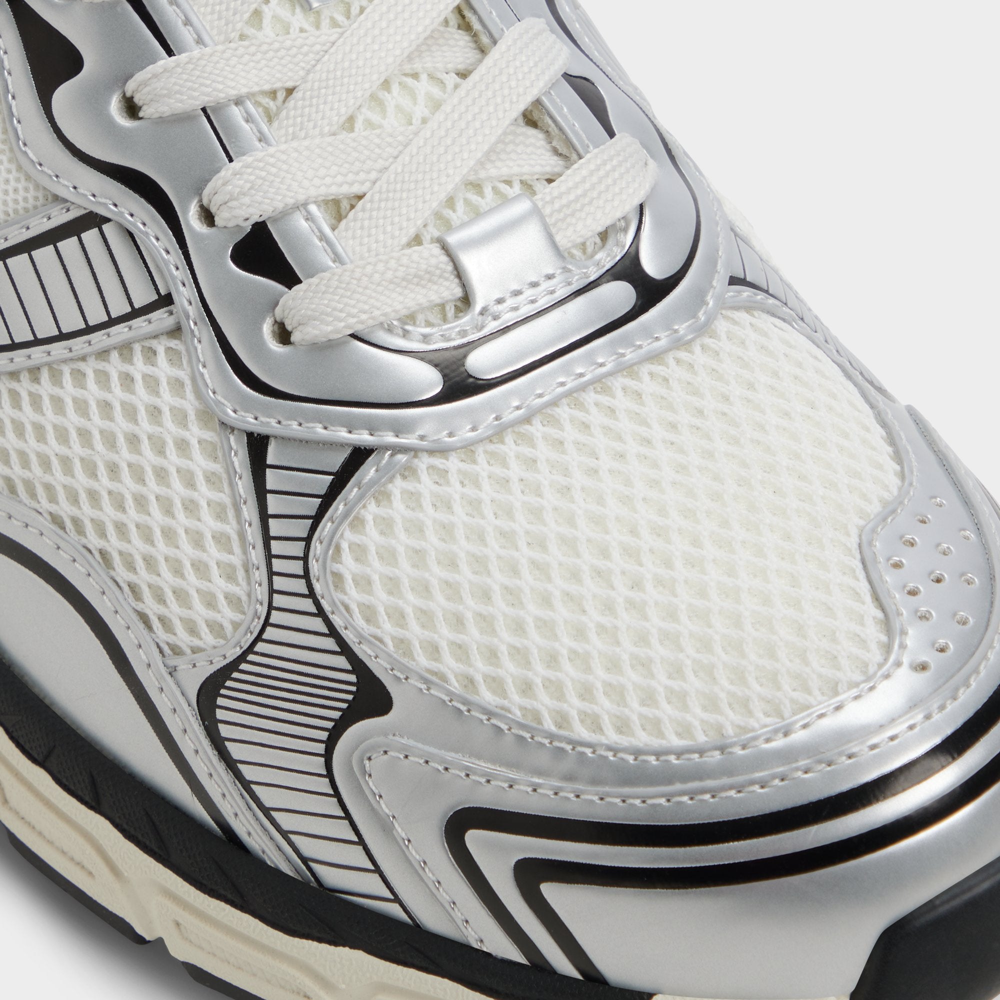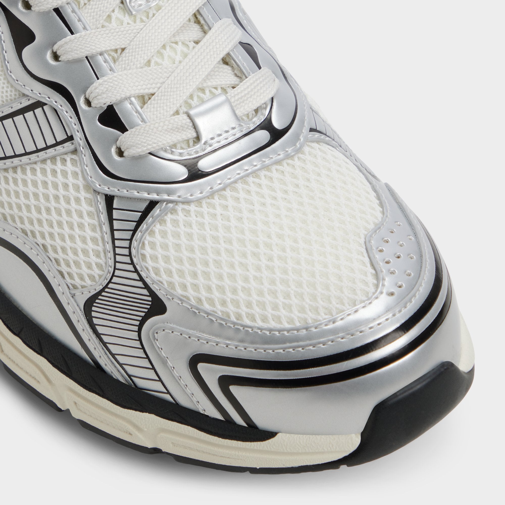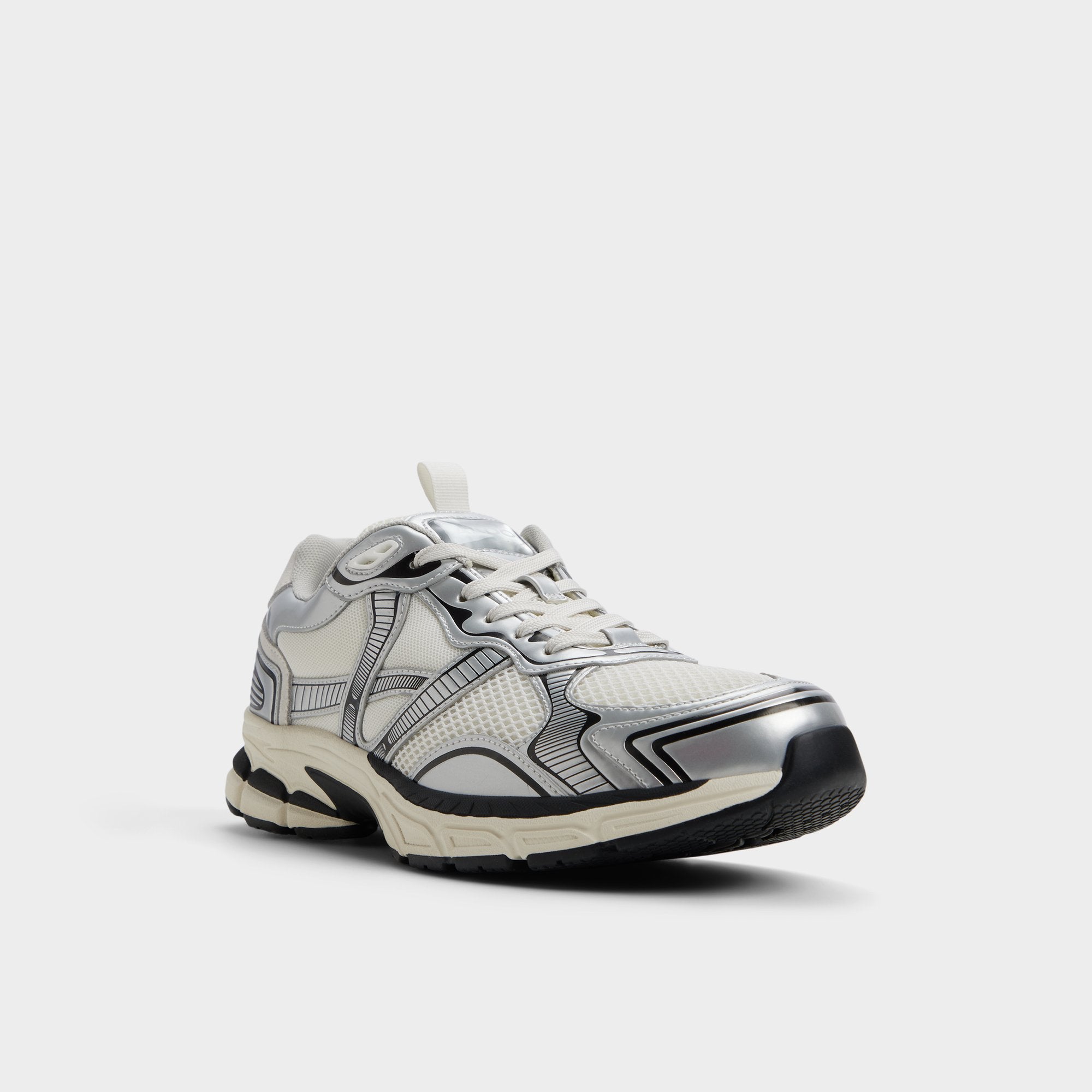 Breathable mesh combines with sleek synthetic overlays to give this white-and-black sneaker a retro runner feel. while a sculpted jogger sole cushions each step and boosts energy for a track-like feel on city streets. Wear it with cuffed cargos for weekend outings or team them with slim joggers for late-night downtown food missions.