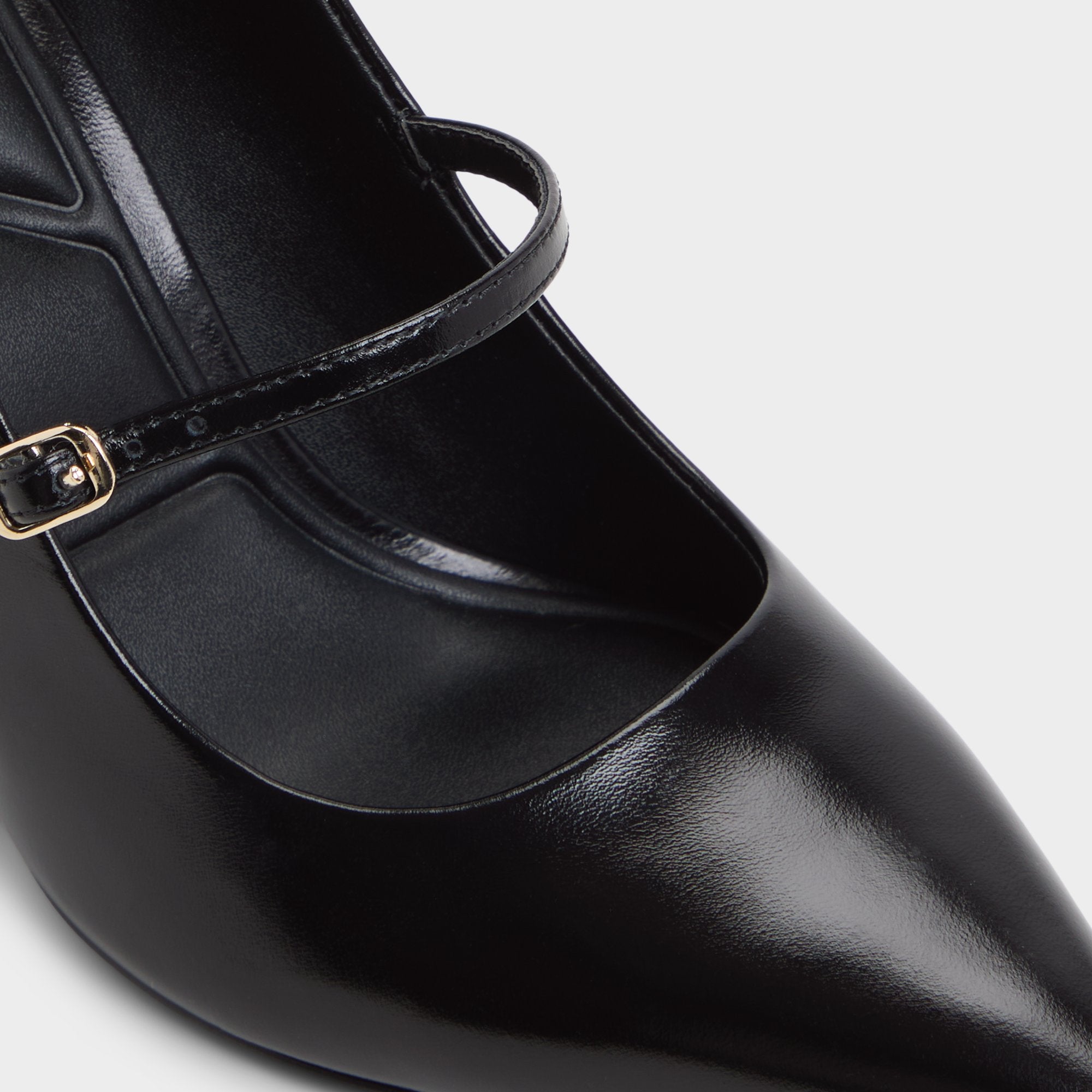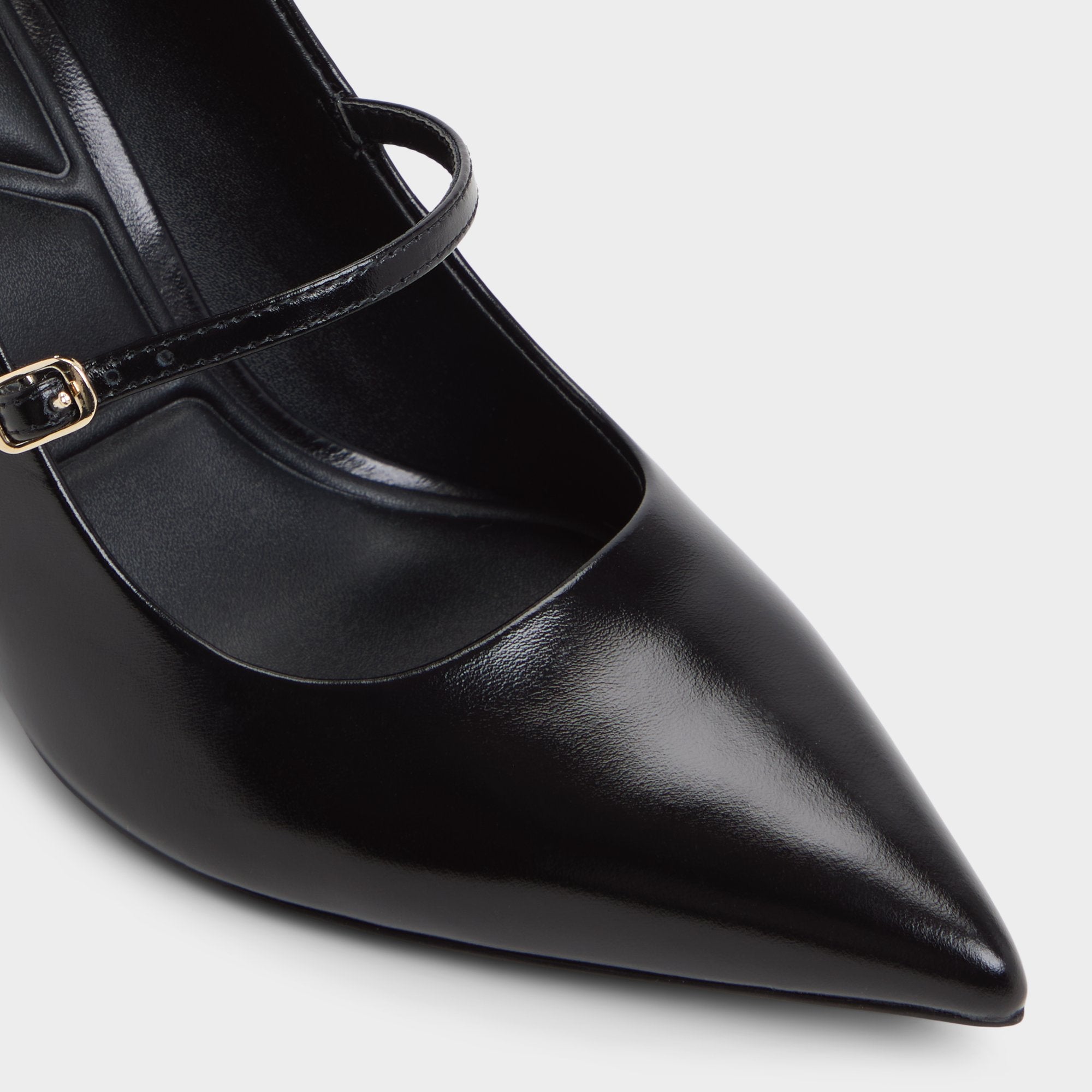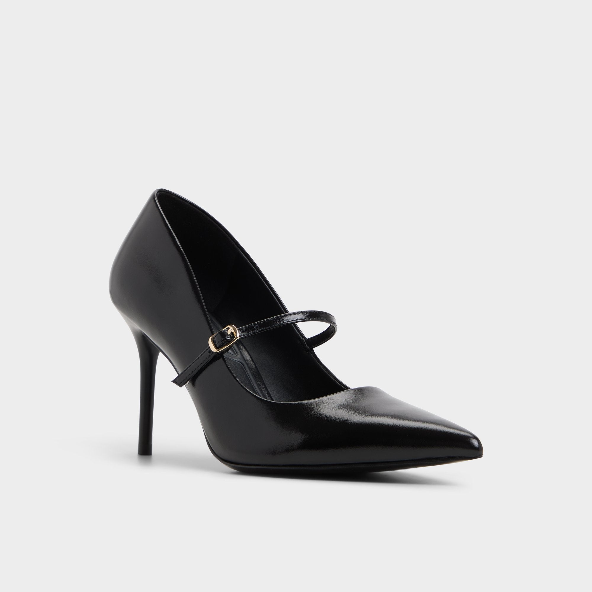 Sleek black leather wraps around a pointed toe. balanced by a delicate Mary Jane strap and stiletto heel for poised confidence day or night. Pair with tailored trousers for pitches. or swap in a satin slip dress when rooftop cocktails beckon.