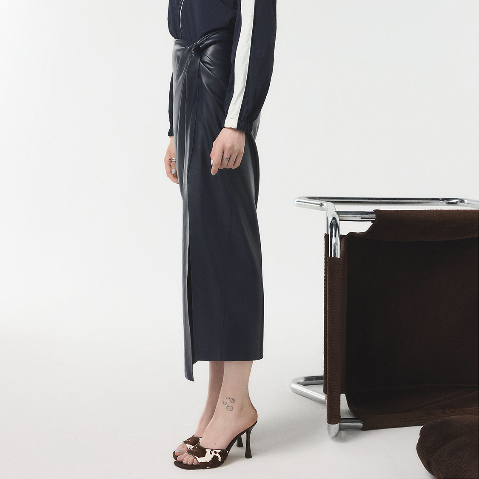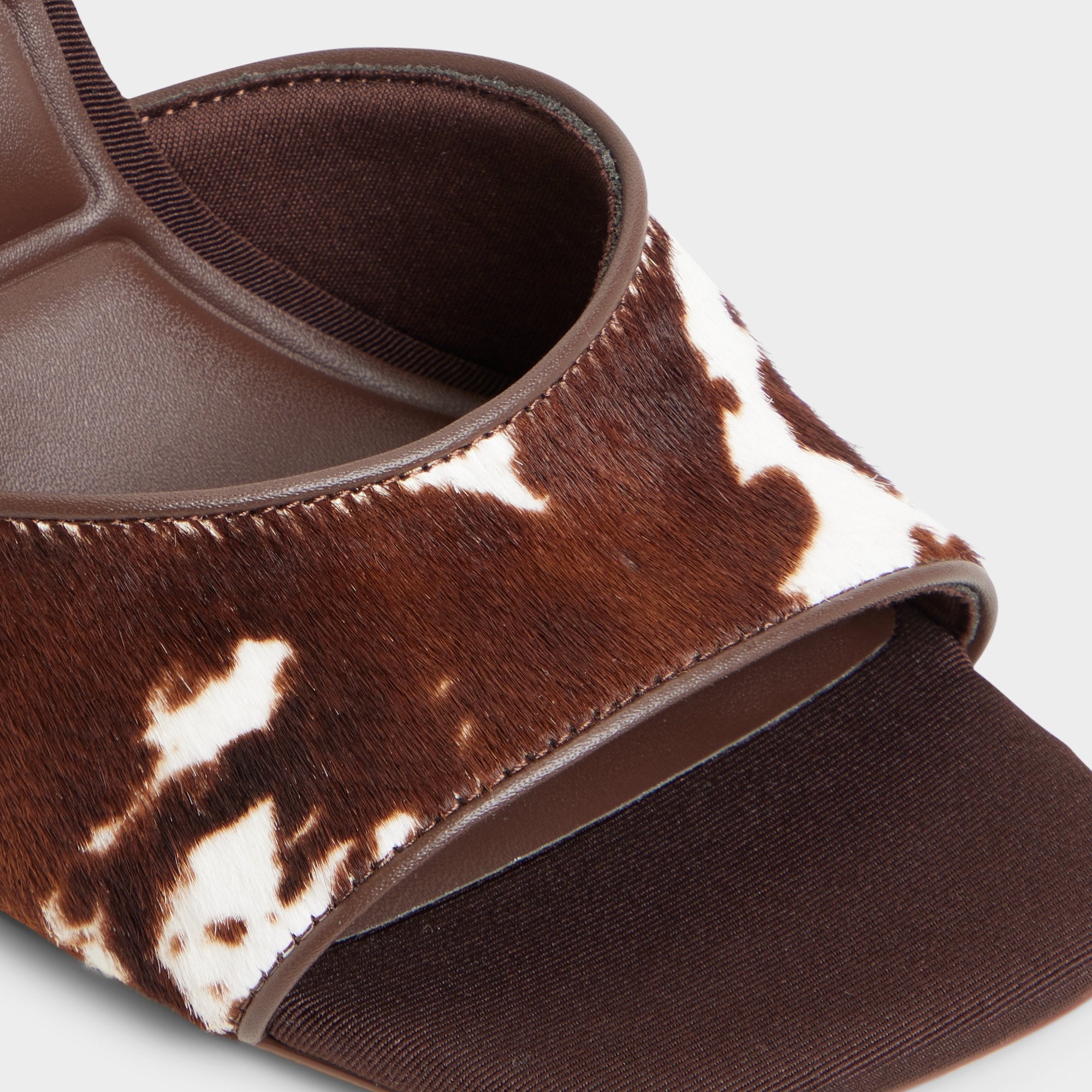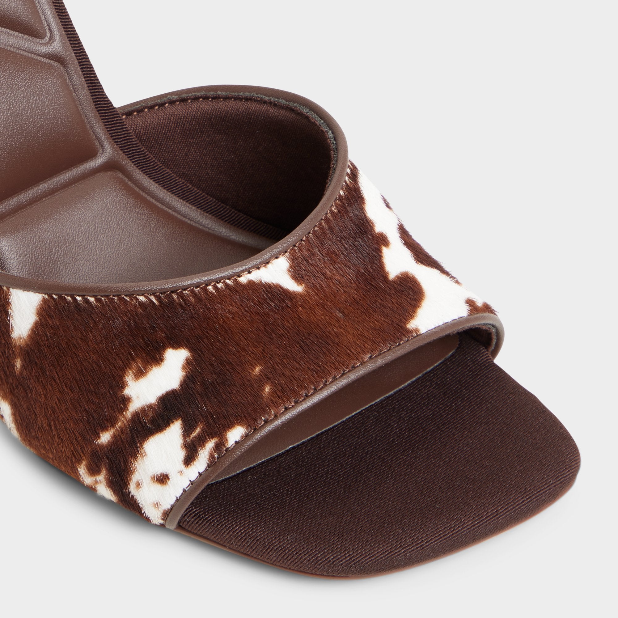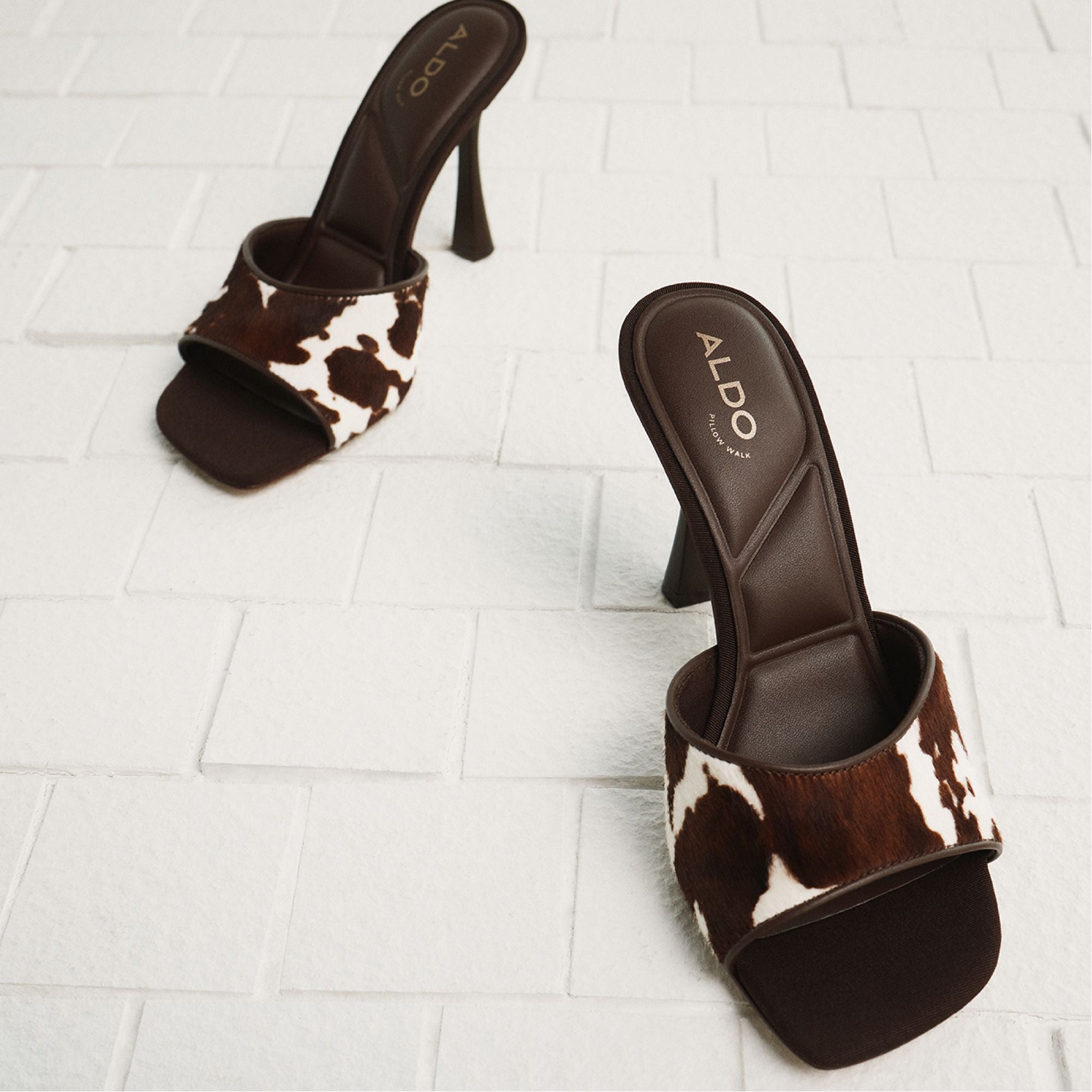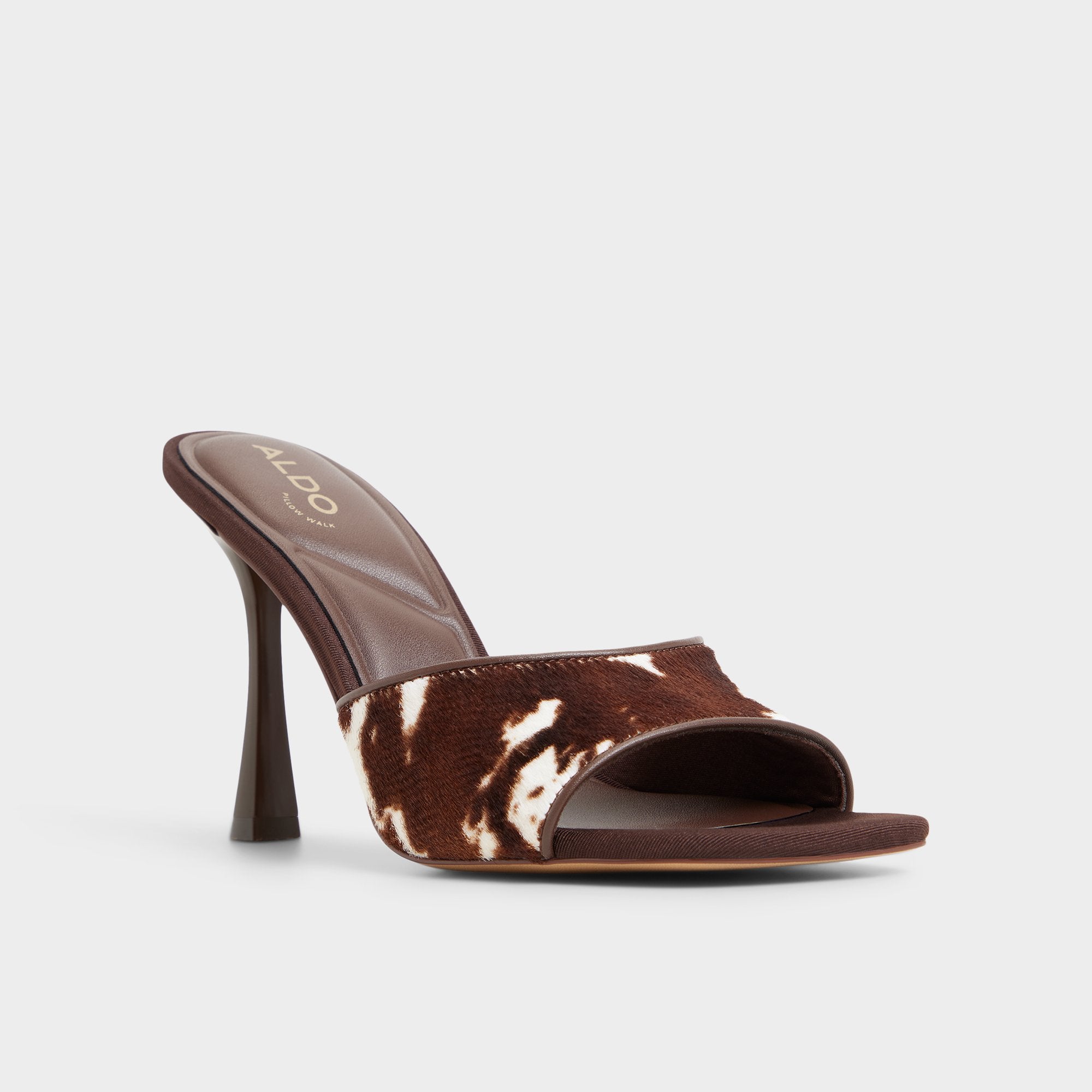 Cowhide spots meet polished leather on a sleek mule. where a flared stiletto elevates the silhouette and trusted comfort lets you glide from morning meetings to evening plans with ease. Pair with tailored shorts for gallery hops. or slide beneath a slinky dress when dinner reservations turn into impromptu dance floors.