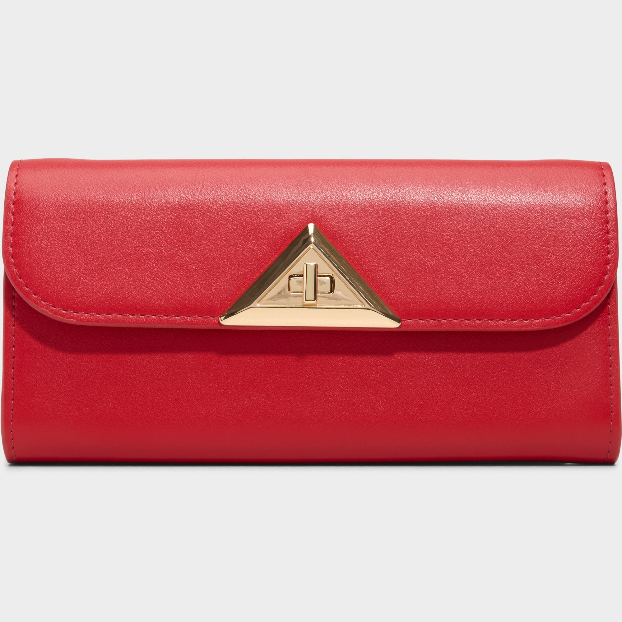 Scarlet leather meets a gold-tone triangle turn-lock. turning the clutch into a confident edge that seals essentials behind polished lines from day to night. a bold whisper of polish you can carry everywhere. Carry it with a sleek slip for evening parties or sling it over tailored denim for desk-to-date polish.