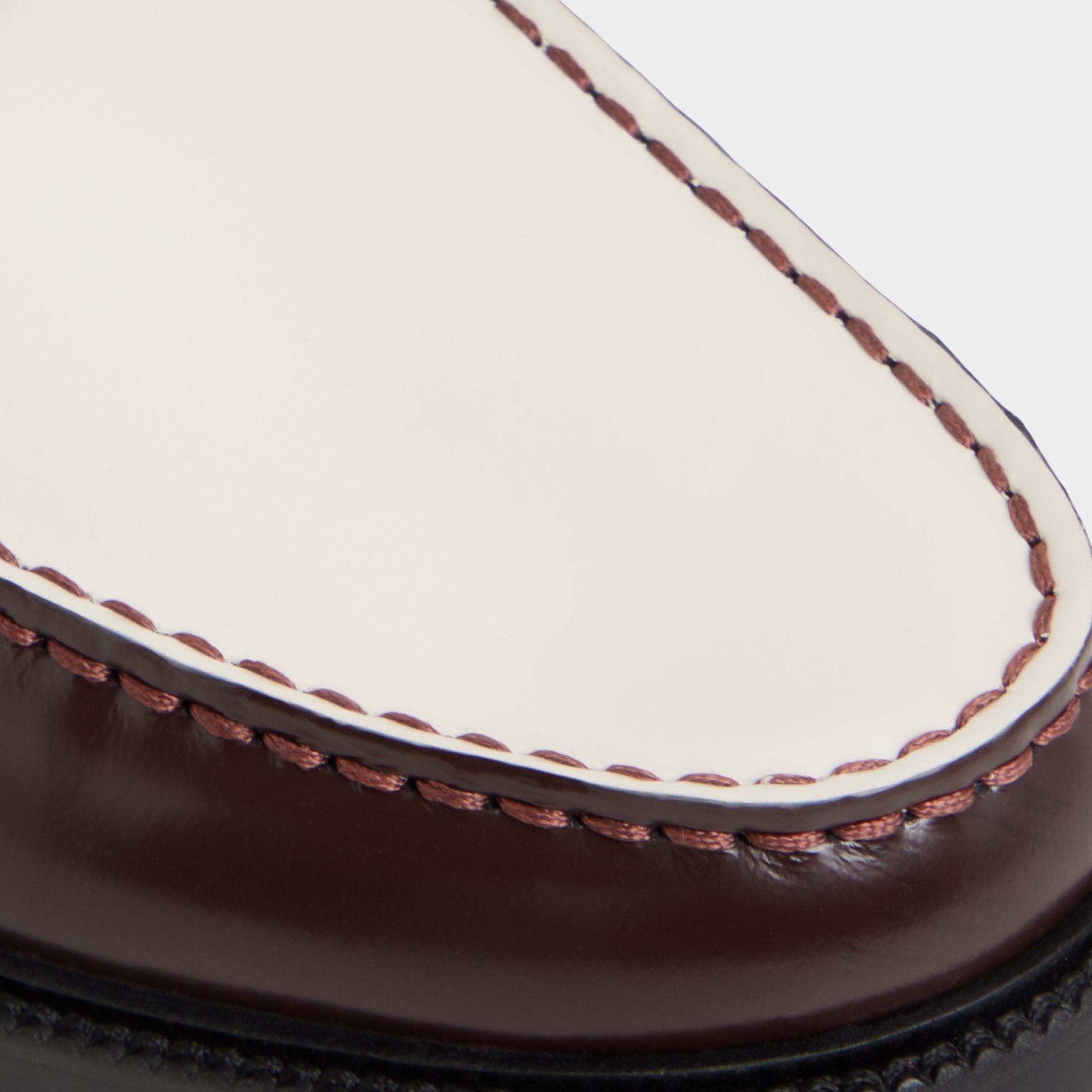 Burgundy leathers frame a bold silhouette. crisp white vamp bands tracing architectural lines that feel modern and confident. while a cushiony sole makes every step glide from morning client calls to evening city strolls. Team it with charcoal tailoring for client meetings. or roll with denim and a knit for Friday nights out.