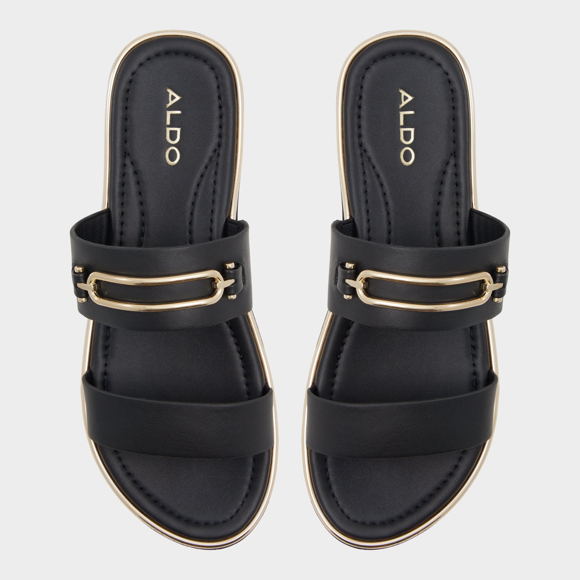 Smooth black leather slides ride on cushy footbeds. while gleaming gold buckles sit atop adjustable straps. turning everyday errands into a touch of luxe and boosting confidence from morning to night. Pair them with joggers for coffee runs. or ground a breezy midi for patio dinners as the city glows.