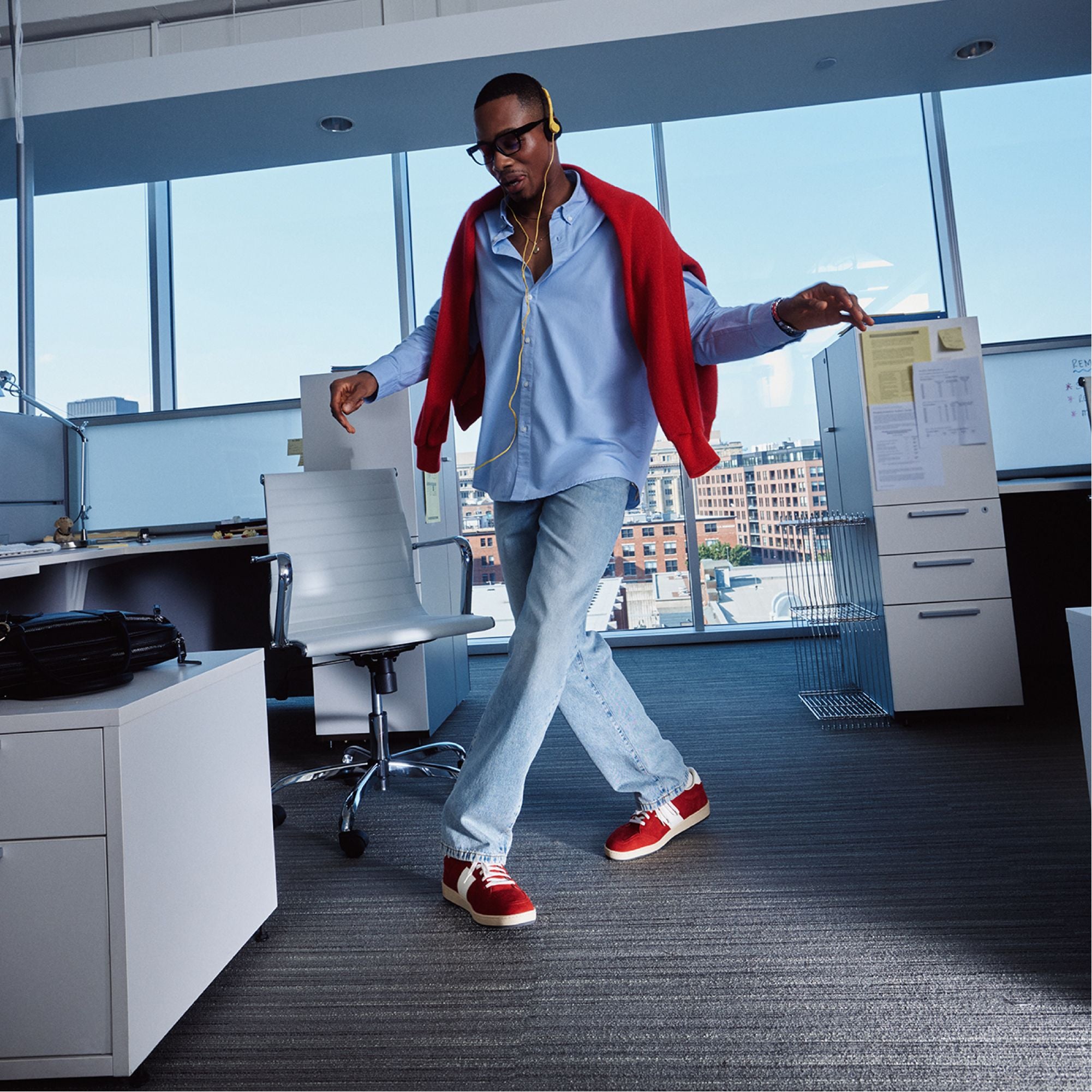 Crimson suede gets energized by a white side stripe on this low-top sneaker. with a cushy cupsole that keeps landings soft whether sprinting for the subway or looping city blocks. Pair it with cuffed jeans for game-day hangs or switch to tailored joggers for rooftop drinks after dark.