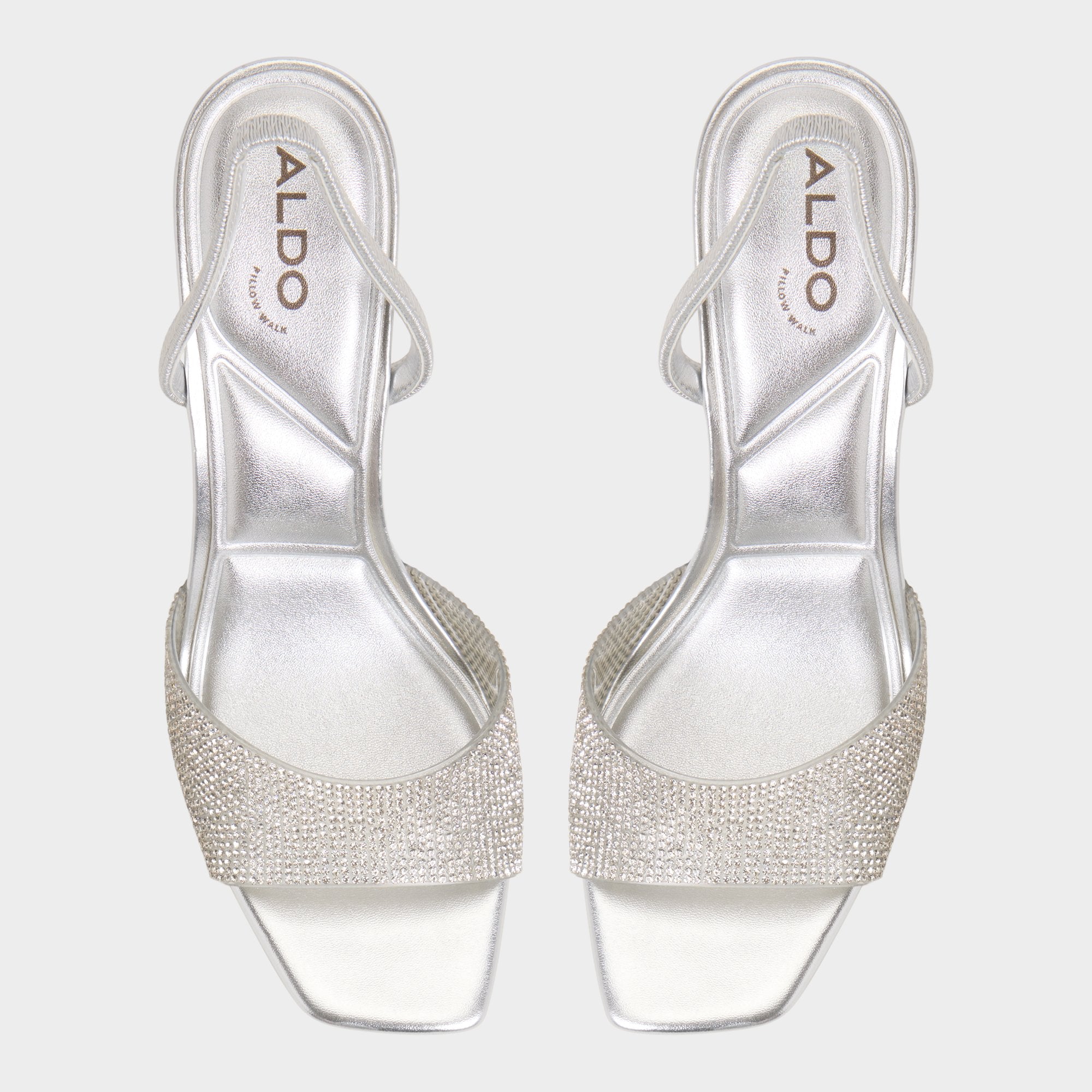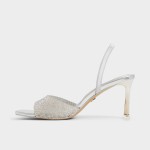 Micro-rhinestones crown the almond-toe vamp on a slender slingback stiletto, catching light with every step while cushioned support and an elastic strap keep you steady from morning meetings to moonlit moments. Pair with a satin jumpsuit for rooftop receptions, or swap into cropped jeans when karaoke calls for extra sh