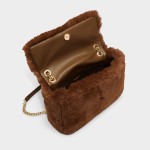 Plush mocha faux fur wraps this shoulder bag in instant warm-and-fuzzy glam, complemented by gleaming gold hardware and a leather-topped chain strap that keeps its flap silhouette polished yet easygoing on chilly nights. Sling over ribbed dresses for fireside cocktails or tuck against velvet blazers at holiday parties