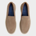 Soft taupe suede meets an ivory cupsole in this loafer, blending laid-back polish with everyday comfort as a cushy underfoot keeps you moving from morning errands to sunset strolls with easy confidence. Roll chinos for patio lunches or pair with a linen blazer on casual Fridays, easy polish that moves with you.